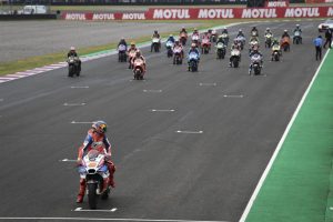 Zarco hit Pedrosa, and sent the poor fellow into orbit. But all of that Pedrosa and Espargaro bashing is perfectly OK, because none of them are Rossi. Nobody cared. Until of course Rossi went a little wide on entry to a corner, and Marquez dived for the half-gap that closed very quickly as Rossi tightened his line. They bumped, both ran wide onto the wet part of the track and then Rossi proved grass-tracking isn’t his thing and binned it on the Buffalo. Cue inevitable social media meltdown.